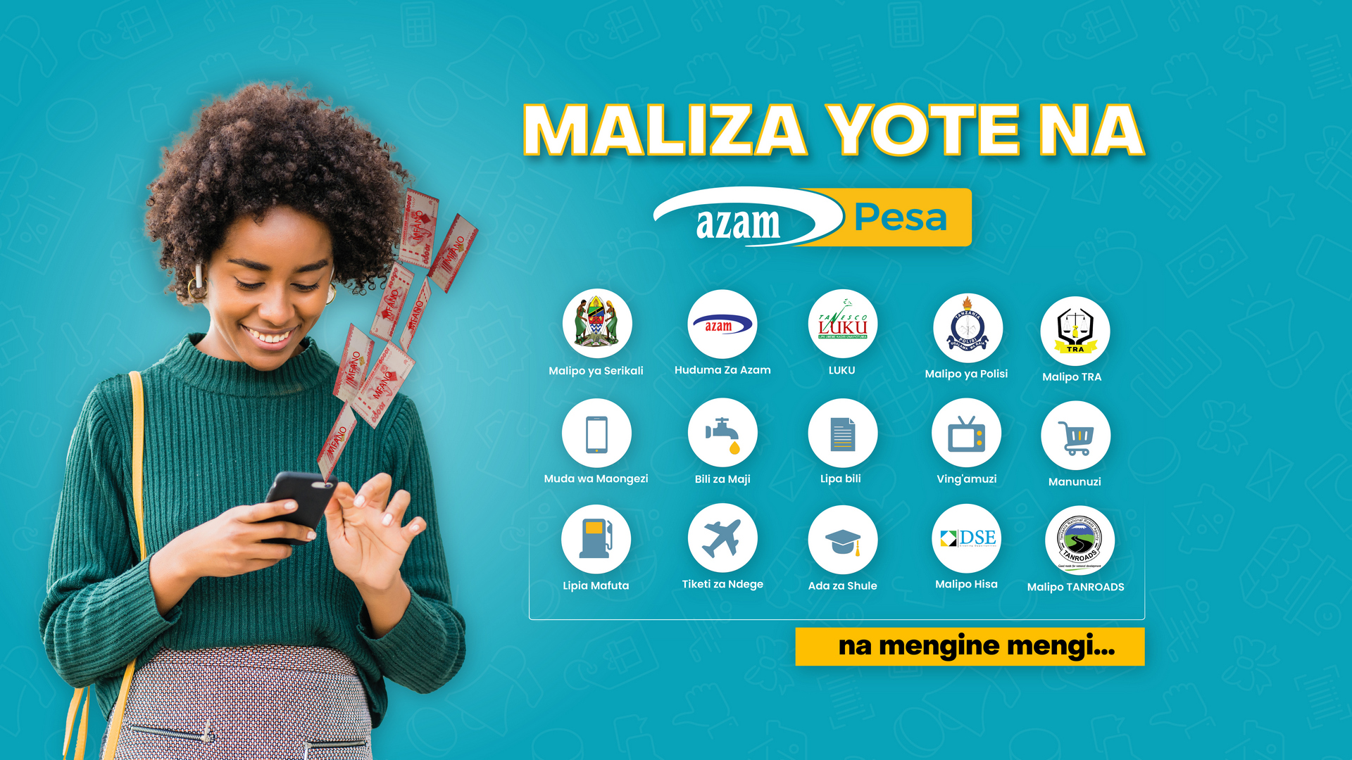 Yote yaliyomo kwenye tovuti hii ni mali ya AzamPesa. Haki zote zimehifadhiwa. Hakimiliki.
